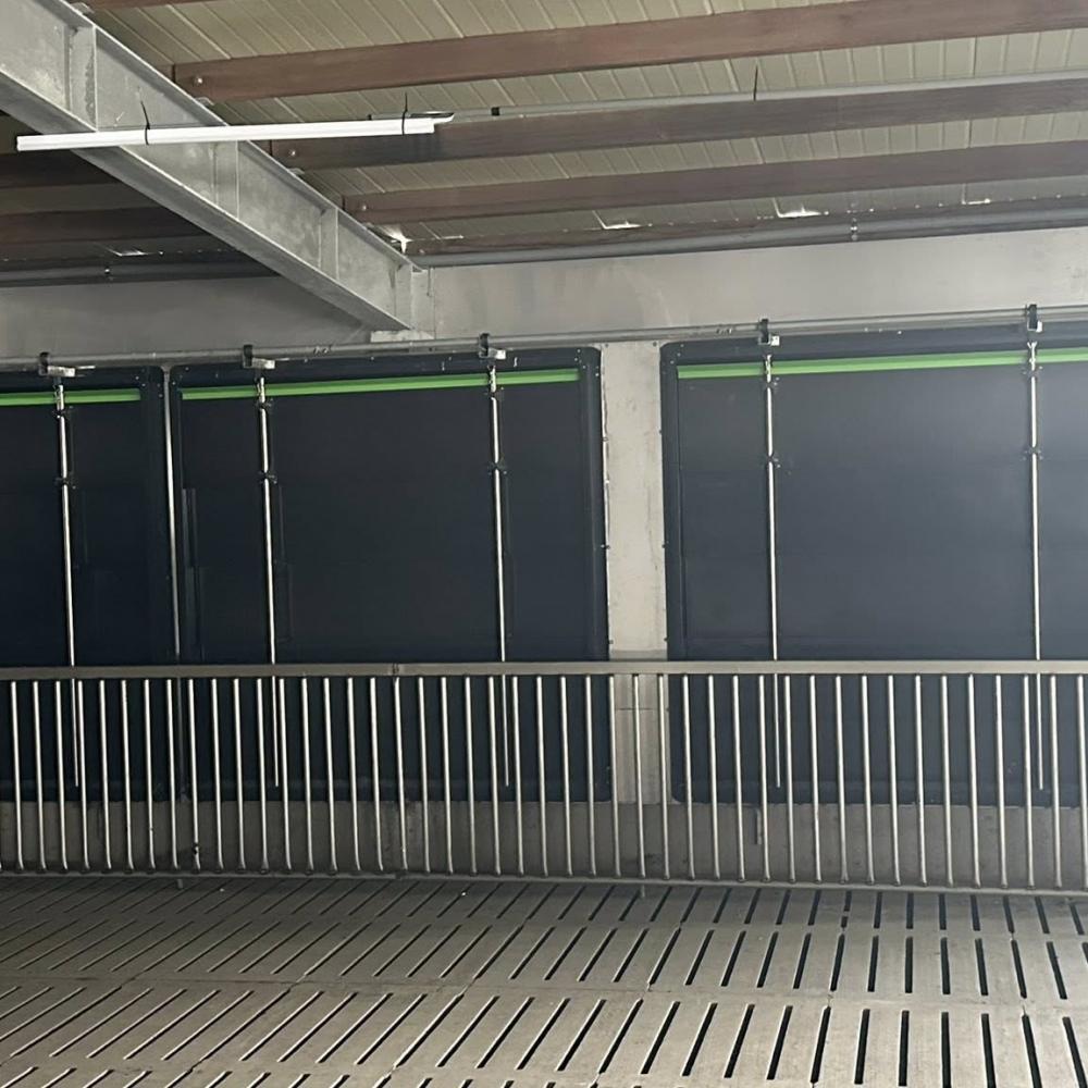 Tunnel ventilation is a way to create a controlled “wind” through the barn to keep pigs cool and maintain a healthy climate. Tunnel inlets are placed at one end of the building and powerful exhaust fans at the opposite end. The fans pull air through the barn, creating a “tunnel” of airflow over the animals.