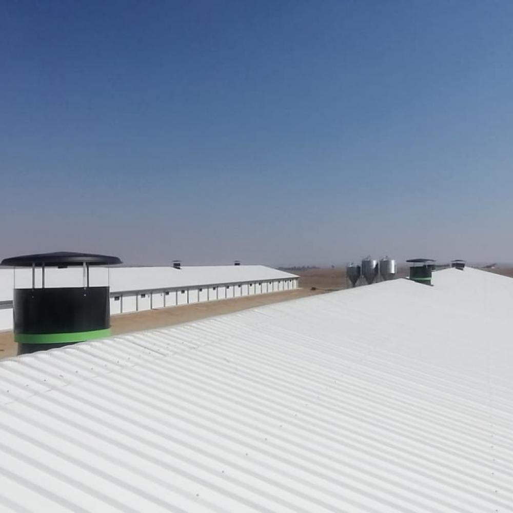 The farms are designed for efficient and animal-friendly production with special attention to energy savings. The farm farmer, mr. Mike Potgieter is very satisfied with the Fancom products and performance. He can already see that the new houses are much more energy efficient than his other houses and this is the first site that he has gotten a EPEF of 424 on the first cycle placed.
