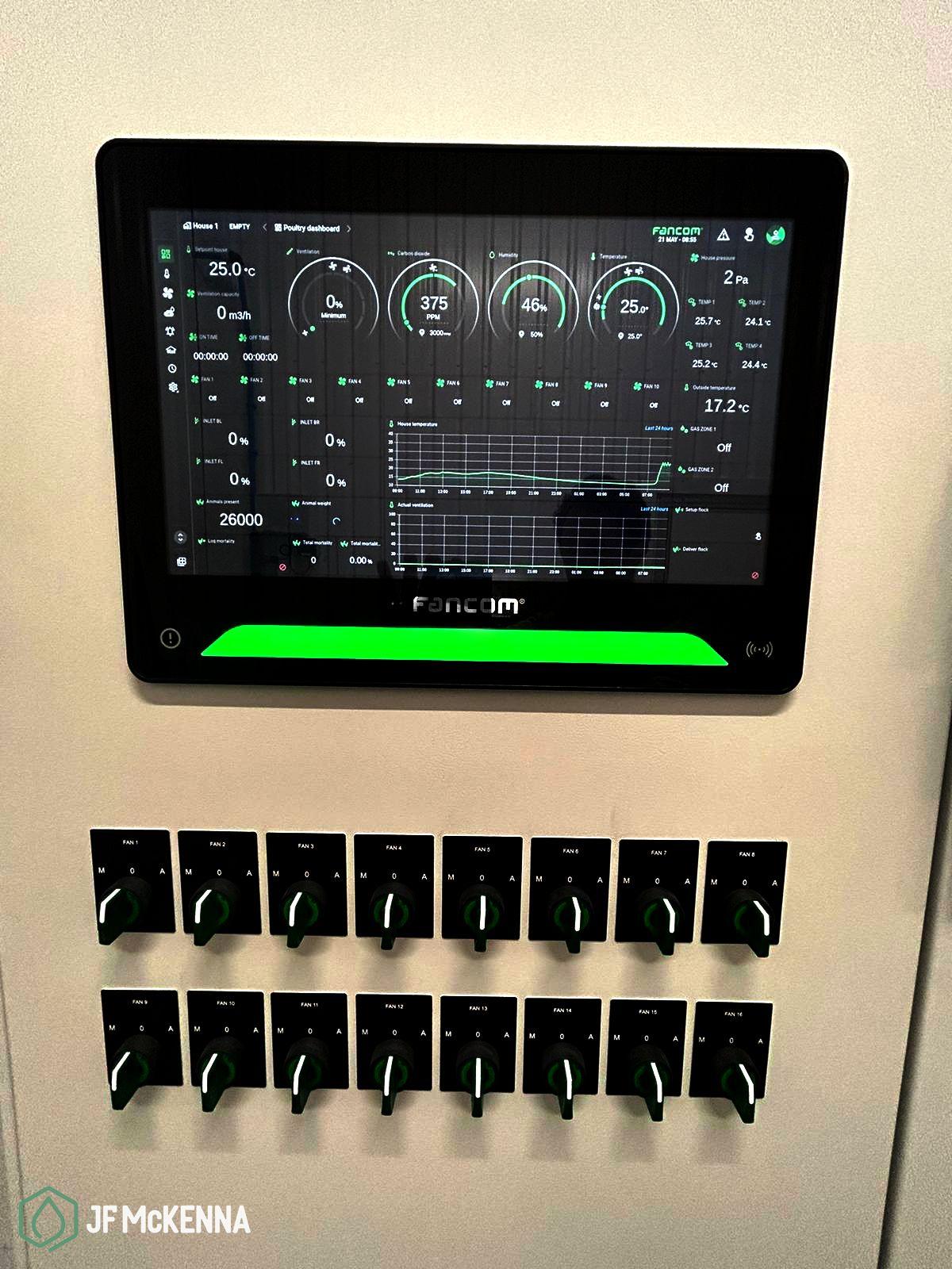 Our UK distributor JF McKenna recently complete a broiler project in Lancashire, where they installed the new Fancom One controller for ventilation with alarms and sensors. This is one of their recent Fancom One installations in North of England, the customer is very happy and the new shed is running well.